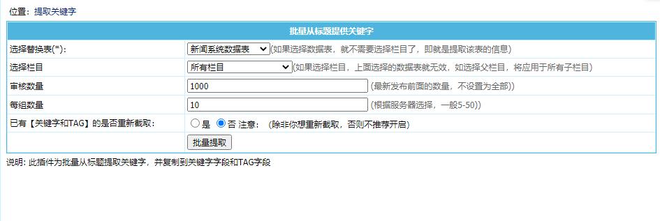 此插件为批量从标题提取关键字,并复制到关键字字段和TAG字段。